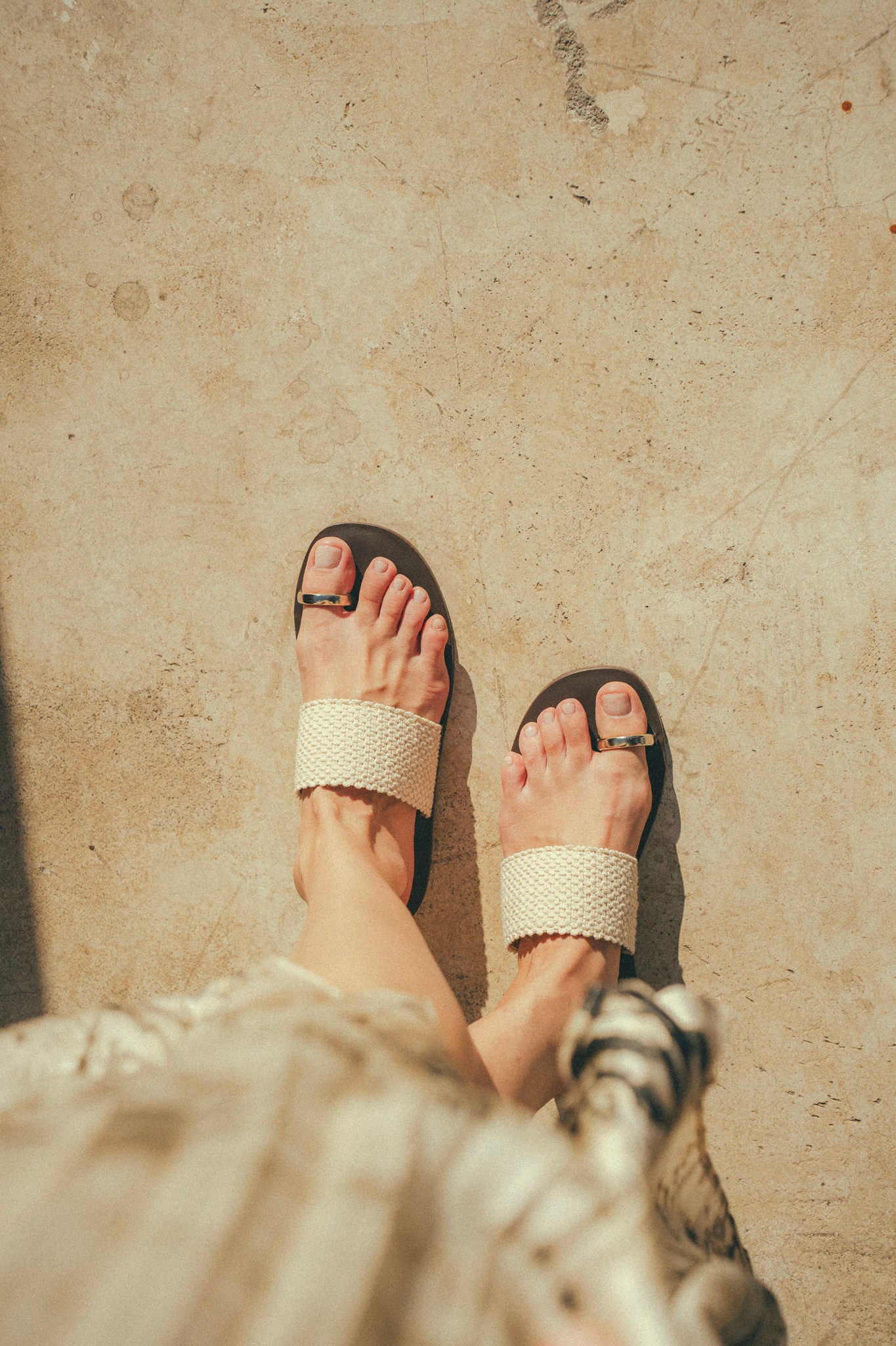 Experience the perfect blend of simplicity and sophistication with the Beluga Sandal. This stunning footwear showcases a simple yet captivating design, elevated by the artful mixing of materials. The gold toe ring adds a touch of glamour, while the bold woven band creates a striking visual contrast.
